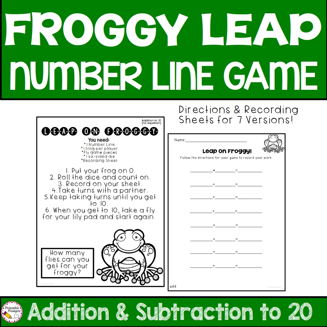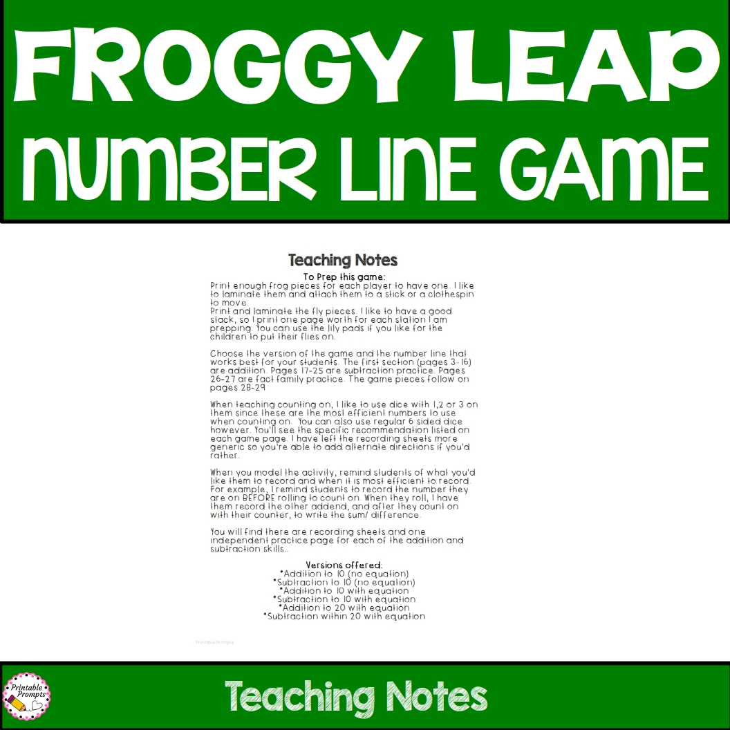 Each skill has a direction page and corresponding recording sheet, but the frog, lily pad, and fly game pieces can be used with the same number line, so differentiation is a breeze!