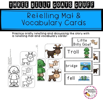 Retelling pieces and setting mat to support an oral retell of Three Billy Goats Gruff or scaffold a written retell or summary.