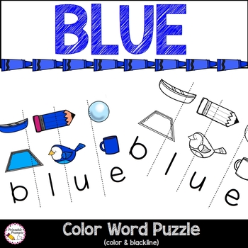 Build color recognition for blue by reading a printable mini book, color with crayons or markers, go on a blue hunt, and completing a cut and paste blue word puzzle. This is a great Preschool or kindergarten color practice resource. This is a great way to build upon early literacy skills as well!