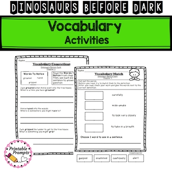 Build comprehension and increase engagement before, during and after reading with chapter questions, vocabulary activities, and character study organizers in this novel study unit for Dinosaurs Before Dark. Print the comprehension journal cover and the activities just right for your students!