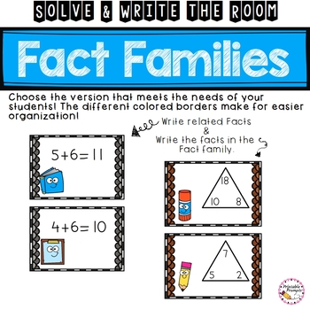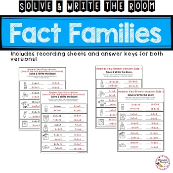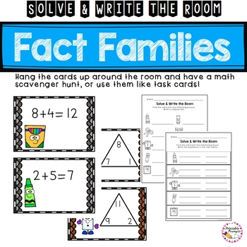 Solve the room with this write the room resource perfect for math centers as you practice addition and subtraction fact families! Get students moving as they search and solve using the pictures on the cards and their recording sheets!