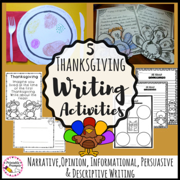 Narrative, informational, descriptive, persuasive,and opinion writing activities all rolled into one fun Thanksgiving Writing unit pack! Research and write about Native Americans, Pilgrims and Turkeys, and even make a Thanskgiving plate descriptive writing craft!