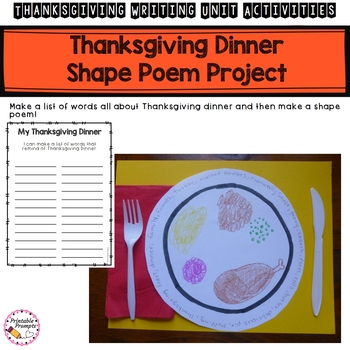 4. Thanksgiving Dinner Descriptive Writing- Make a list of Thanksgiving dinner words. Use the words to create a plate shape poem and craftivity. Great for bulletin boards or displays!