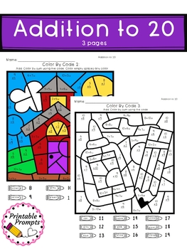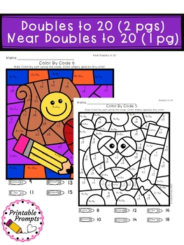 Addition Color by Number is a fun way to have students practice adding to 20. These 6 back to school coloring pages will help students add and use the code to color to practice mixed facts, doubles, and near doubles. Great for a math fact center, morning work, substitute plans, or early finishers!